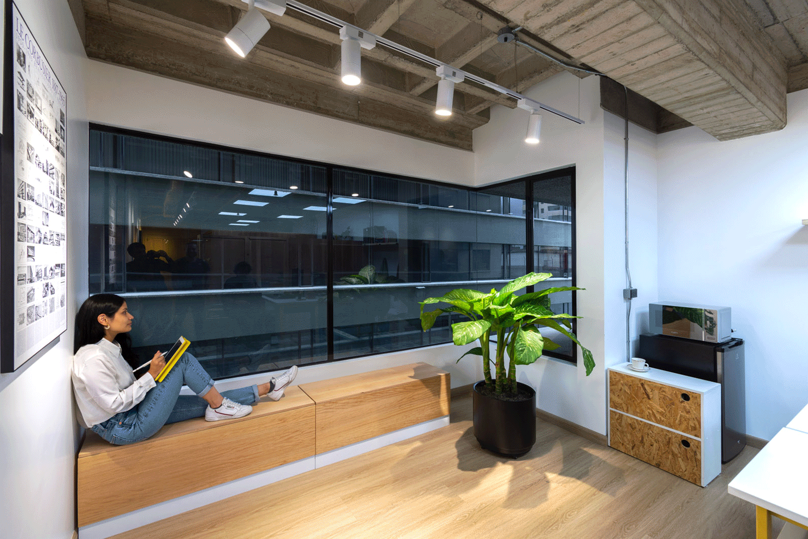 209 Housing Lab está pensada como un espacio de coworking, en el cual cada pequeño rincón tiene su función. Cuando se nos entregó la oficina, el piso era de alfombra, las paredes pintadas de color naranja y el cielo raso había pasado de color blanco a color amarrillo. Se desarrolló un sistema de panelería de madera, que además de dividir esta zona en tres; sala de reuniones, trabajo y recreación, busca generar distintas configuraciones en la misma.